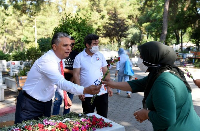 Antalya'da Muratpaşa Belediyesi, Kurban Bayramı arifesinde Uncalı, Andızlı ve Kurşunlu kent mezarlıklarında kaybettikleri yakınlarını ziyarete gelen ailelere çiçek dağıttı. Kent mezarlıklarında dağıtım için masalar kurulurken ilçede bulunan 20'ye yakın mezarlıkta ise Muratpaşa Belediyesi, her kabre birer çiçek bıraktı.