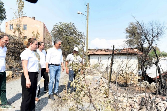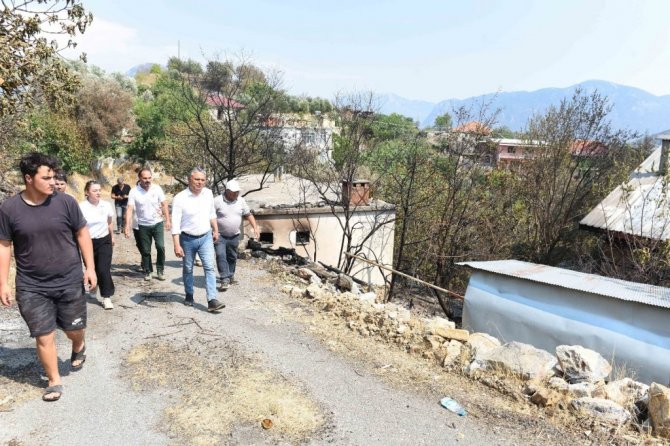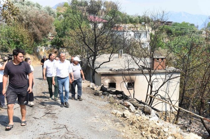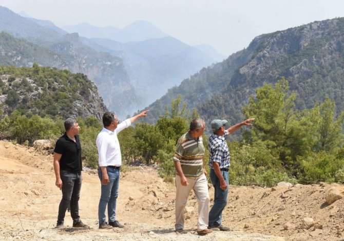 Muratpaşa Belediye Başkanı Ümit Uysal, Gündoğmuş'ta yangından zarar gören Karaisa, Senir ve Kalecik mahallelerinde incelemelerde bulundu.
