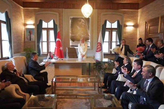 Geçici olarak görevden alınan Bilecik Belediye Başkanı Semih Şahin, yerine başkan vekili seçilen Melek Mızrak Subaşı'nın kendisi tarafından makam odasına...