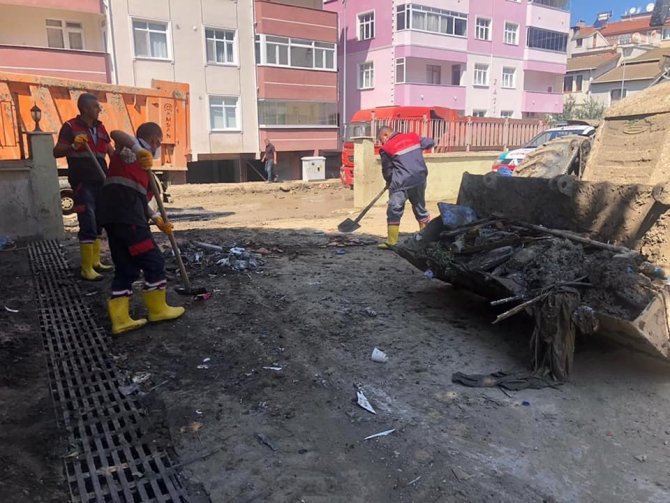 Kastamonu'da yaşanan sel felaketinin en derin yaralar bıraktığı ilçe Bozkurt'ta çalışmaları inceleyen Kastamonu Belediye Başkanı Op. Dr. Rahmi Galip...