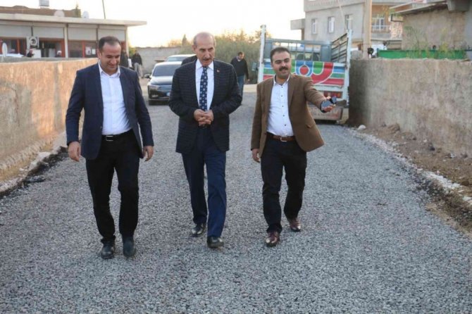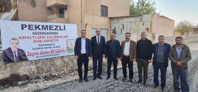 Her fırsatta çalışmaları yerinde denetleyen Akçakale Belediye Başkanı Mehmet Yalçınkaya asfalt serimi yapılan Pekmezli Mahallesine giderek muhtar ve mahalle sakinleri ile buluştu.