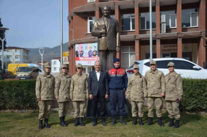 Bilecik Merkez İlçe Jandarma Komutanı Jandarma Üsteğmen Canip Akyüz ve kurs için kente gelen astsubay adayları, Bayırköy Belde Belediye Başkanı Mustafa...