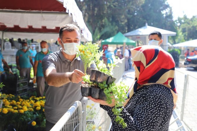 Alanya Belediyesi Park ve Bahçeler Müdürlüğü tarafından 29 mezarlıkta yapılan çiçek dağıtım etkinliğinde kabir ziyareti yapan vatandaşlarla da sohbet eden Başkan Yücel, vatandaşların bayramını kutladı. Çiçek dağıtma geleneğini sürdüreceklerinin altını bir kez daha çizen Başkan Yücel, "Vatandaşlarımız bu hizmetten memnun. Belediyemiz bugün ilçe genelindeki 29 mezarlıkta, 61 bin adet yıllık ve mevsimlik çiçek fidesi dağıtacak" dedi. Ayrıca, vatandaşlara gül suyu, kolonya, lokum ikram edildi.