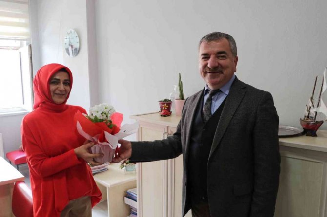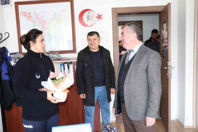 Havza Belediye Başkanı Sebahattin Özdemir belediye çalışanlara çiçek takdim etti.