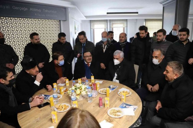Konağa gelenlere çayların Palandöken Belediyesi'nden olduğunu söyleyen Başkan Sunar, "Belediye başkanı seçildikten sonra bu alanın "Millet Konağı" olması gerektiği gibi bir kanaat içerisinde oldum. Arkadaşlarımızla da görüşerek Cumhurbaşkanımız Sayın Recep Tayyip Erdoğan'ın ortaya koyduğu perspektif doğrultusunda bu mekanı başkanlık konutu yerine "Millet Konağı" olarak kullanmanın uygun olacağına kanaat getirdik. Çünkü biz millete sevdalı kadrolarız. Hemen kolları sıvadık. Binanın güçlendirmesini tamamen Palandöken Belediyesi'nin kendi personeli yaptı. Güçlendirme bittikten sonra içinde birtakım düzenlemelerle binanın alt katını ilçemizde oturan nispeten olgun, daha yaşlı nüfusun hizmetine sunduk. Burada böyle muhtelif zamanlarda programlar, söyleşiler, belediye bünyesinde kurulan Halk Müzik Korosu ve aşıklar gecesi olacak. Ayrıca günün her zamanında belli yaştaki nüfusumuz, buradan istifade edecekler. Üstteki iki kat ise gençler ve bayanlara yönelik. Gençlerin ders çalışabileceği, kitap okuyabileceği, bayanların oturabileceği, sohbet edebileceği son derece güzel bir mekan haline geldi. Tabii çaylar da bizden. Palandökenlilere hayırlı olsun " diye konuştu.