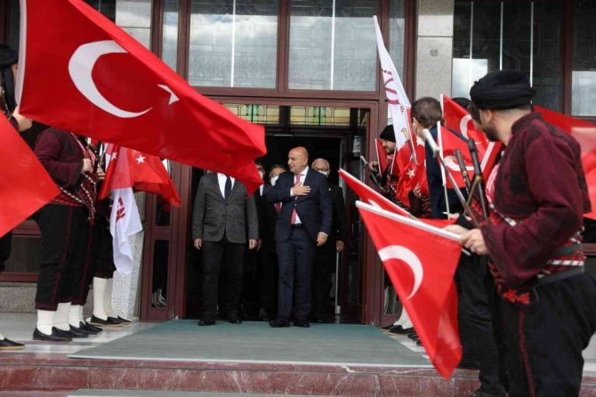 Atatürk ve silah arkadaşlarının yazdığı kahramanlık destanının Türk gençleri için örnek teşkil ettiğine dikkati çeken Altınok, "Atatürk, İngiliz ve Amerikan mandasını reddetmiş, Türk esir yaşamaz, "Ya istiklal ya ölüm" diyerek Milli Mücadele'yi başlatmış ve kazanmıştır. Siperler Çanakkale'de 6 ve 8 metredir. Şehit olacağını göre göre ölüme koşan yiğitlerin kanıyla sulanmıştır bu topraklar. Siperlerde ay ve hilal şehitlerimizin üzerine düşmüştür. Bayrağımızın rengi şehitlerimizin kanıdır. Bu nedenle bayrağımız yüce ve kutsaldır. Atatürk gençlere "Atanı, tarihini ve geçmişini tanıdıkça kendinde büyük işler başarmak için güç ve kudret bulacaksın" diyor" açıklamasında bulundu.
