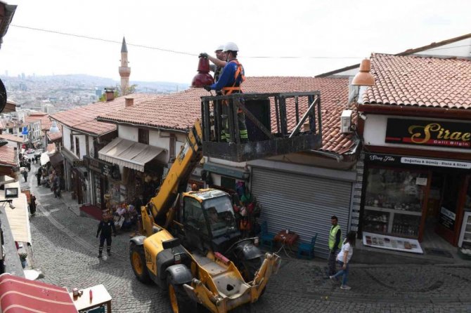 Ankara Büyükşehir Belediyesi, Başkent'in turizm merkezlerinden biri olan Ankara Kalesi'nde aydınlatma çalışmalarını hızlandırdı. Kent Estetiği Daire Başkanlığı, Ankara Kalesi'nin bulunduğu Koyunpazarı Yokuşu, Karakaş ve Pirinç Sokak'ı rengarenk armatür lambalarla donattı. Geri dönüşümle yeniden kullanıma sunulan armatür lambalar sayesinde 100 bin TL tasarruf elde edildi.