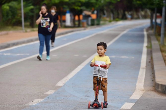 Aileler çocuklarıyla birlikte güvenle bisiklete biniyor