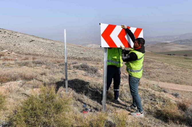 Merkez ve çevre ilçelerde bağlantı yolarında can ve mal güvenliğini önceleyerek önlemlerini artıran Büyükşehir Belediyesi, yıpranan trafik bilgi ve işaret levhalarını yenileyerek mahalle (köy) yollarını güvenli ve konforlu hale getirmeyi amaçlıyor. Asfaltı atılmış veya genişletme çalışmaları tamamlanmış ilçe mahalle bağlantı yollarında 32 bin standart trafik işaret levhalarını yerleştirmeye başlayan Sinyalizasyon ve Altyapı Şube Müdürlüğü ekipleri, görüş mesafesini artıran ve reflektör görevi gören CTP yol kenar dikmelerinin de (kedi gözü) montajını gerçekleştiriyor.