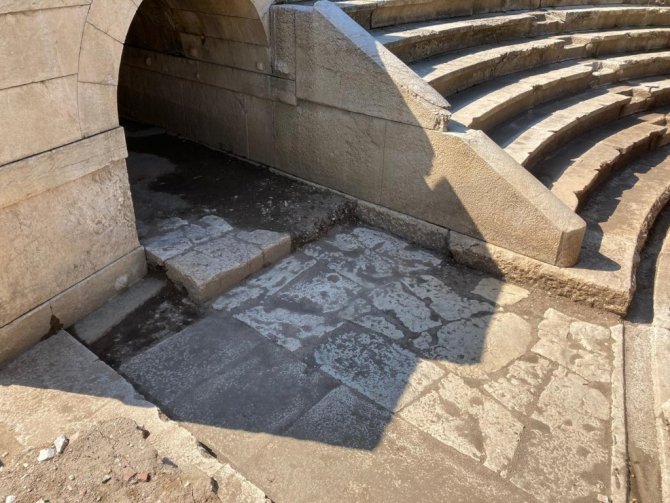 Düzce Belediyesi'nin personel desteği sayesinde hızla ilerleyen Konuralp Prusias Ad Hypium Antik Tiyatro kazı alanında her geçen gün yeni keşifler ortaya çıkarken tiyatronun son basamakları da ortaya çıktı.