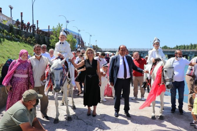 Başkan Demirtaş, Katkılarından dolayı Kaymakam Çorumluoğlu'na plaket takdim etti. Öte yandan Sünnet Şölenine katkı sağlayan hayır sever iş insanlarına da plaketler verildi. Sünnet olan 41 çocuk daha sonra sahneye gelen robotlar ile birlikte dans ederek doyasıya eğlendi. Sünnet Şöleninin son bölümünde ise çocuklar için sahil bandında at gezisi düzenlendi.