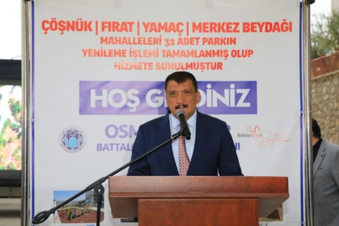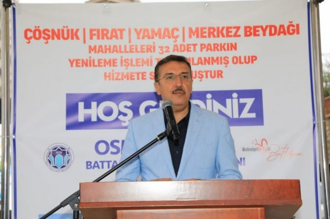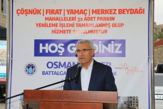 Programın açılış konuşmasını gerçekleştiren Battalgazi Belediye Başkanı Osman Güder, "Göreve geldiğimiz ilk andan itibaren ilçemizde bölgeler arası gelişmişlik farkını kaldıracağımız demiştik. İlçemize hizmette hiçbir zaman ayrım yapmayacağımızın söylemiştik. Hizmetlerle dolu dolu 2.5 yılımıza baktığımız zaman hamd olsun ki Battalgazi'mizin tüm mahallelerine hizmetlerimizi eşit şekilde götürdüğümüzü görürsünüz. Hizmetlerimizde ve yatırımlarımızda, bu bölgeler birinci önceliğimiz oldu. Bu hizmetlerimizin meyvelerini alıyoruz. Bu bölgenin kütüphane ihtiyacı vardı, onu karşıladık. Park sözü vermiştik, bu bölgeye 2 adet iki büyük park açtık. Her zaman Beydağı gibi arkamızda dimdik duran TOKİ bölgesindeki vatandaşlarımızın, park yenileme taleplerini de yerine getirdik. Toplam maliyeti 3 milyonun üzerinde 32 tane parkımızı yeniledik ve bugünde düzenlediğimiz program ile yeniden hizmete sunacağız. Bu parkların yapımı noktasında ilgili birime hemen talimat verdik ve çalışmalar zaman kaybetmeden başladı. Toplam 3 milyonun üzerinde 32 adet parkımızı revize ettik. Bizler vatandaşlarımıza hizmet için bu makamlardayız. Aldığımız sorumluğumuz büyük ve bu sorumluluğu layıkıyla yerine getirmek için gece gündüz çalışıyoruz. Vatandaşlarımız yenilenmiş parklarını gönül rahatlığıyla kullanabilirler. Battalgazili vatandaşlarımıza hizmette asla "tamam" demeden devam edeceğiz. Hayırlı ve uğurlu olsun" dedi.