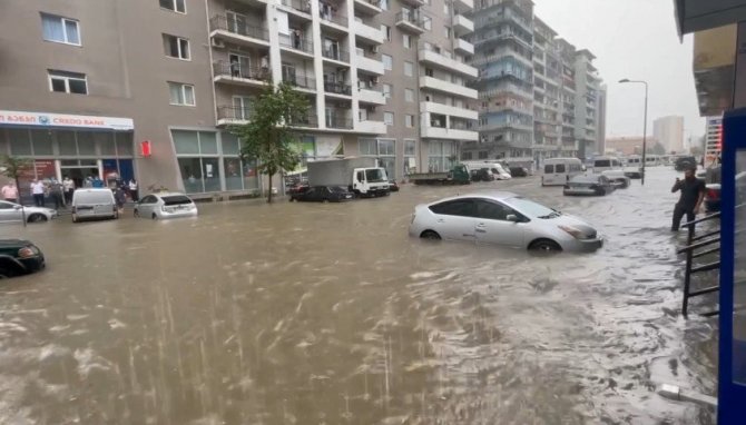 Gürcistan'ın Batum kentinde şiddetli yağışlar nedeni ile meydana gelen sellerde cadde ve sokaklar sular altında kaldı.