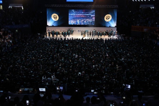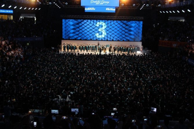 BAU 2017-2018 akademik yılında 18. dönem mezunlarını verdi. 64 ülkeden gelen öğrencilerin de mezun olduğu, toplamda 3500 öğrenci büyük bir coşkuyla keplerini attı. BAU Mütevelli Heyeti Başkanı Enver Yücel ve BAU Rektörü Prof. Dr. Şenay Yalçın’ın açılış konuşmasını gerçekleştirdiği törene, Güney Afrikalı siyasetçi Ace Magashule, Jamaika Eğitim Bakanı Ruel Reid, konsoloslar, dekanlar, akademisyenler ve öğrencilerin aileleri katıldı.