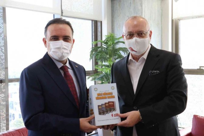 Manisa Büyükşehir Belediye Başkanı Cengiz Ergün, AK Parti MKYK Üyesi ve Manisa Milletvekili Murat Baybatur'u makamında ağırladı. Ziyarette AK Parti Manisa İl Başkanı Salih Hızlı, Manisa Büyükşehir Belediyesi Genel Sekreteri Aytaç Yalçınkaya ve Manisa Büyükşehir Belediye Meclisi MHP Grup Başkanvekili Mehmet Güzgülü de yer aldı. Manisa Büyükşehir Belediyesi'nin yeni hizmet binasının hayırlı olması temennisinde bulunan AK Parti MKYK Üyesi ve Manisa Milletvekili Murat Baybatur, Başkan Cengiz Ergün'e çalışmalarında kolaylıklar diledi. Ziyaretten duyduğu memnuniyeti ifade eden Manisa Büyükşehir Belediye Başkanı Cengiz Ergün, Baybatur'a "Yüzüncü Yılında Milli Mücadele Döneminde Manisa" isimli 4 ciltlik eseri armağan etti.
