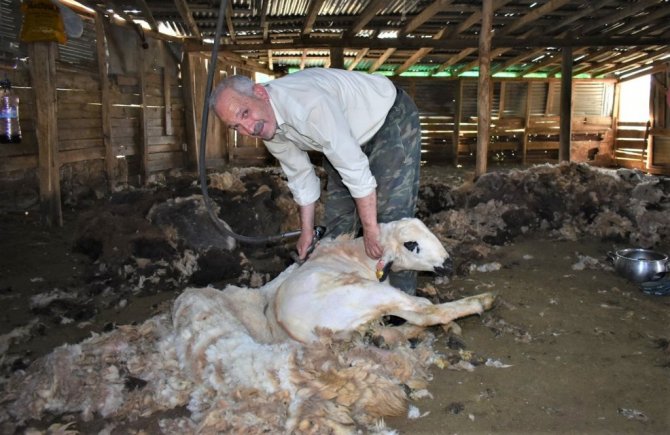 Bayburt'ta sürü sahipleri, küçükbaş hayvanların kırkımına devam ediyor. Kırkma işlemi sonrasında elde edilen yünler eskisi gibi satılmadığı için, ihtiyaç sahiplerine veriliyor.