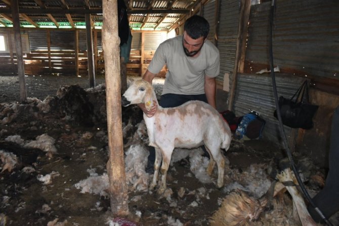 Bayburt’ta havaların ısınmasıyla birlikte besiciler, koyun kırkma işlemine devam ediyor