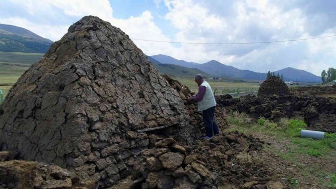 Dışkının dışarıya serilerek kurutulduğuna değinen Yıldız, "Bunun ilk aşaması hayvanlar kışın ağılda beslendikten sonra bunların dışkıları birikiyor. Onlar belli bir kalınlığa geliyor. Kışın bitiminde yaz başında bu kesilir, kalıp kalıp kesilir. Kesildikten sonra bunlar el arabasıyla dışarı çekilir. Dışarda serilir, kurutulur. Kuruması da baya bir zaman alır. Kuruduktan sonra böyle üst üste dizilir. Bu dizilimin amacı da kışın yağmurdan kardan etkilenmesin diye" şeklinde konuştu.