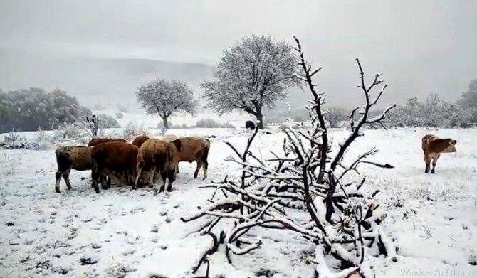 Meraların tamamen kardan kapandığı yaylalarda büyükbaş hayvanlar ahırlara çekilmeden önce kısa süreliğine otlaklara salındı.
