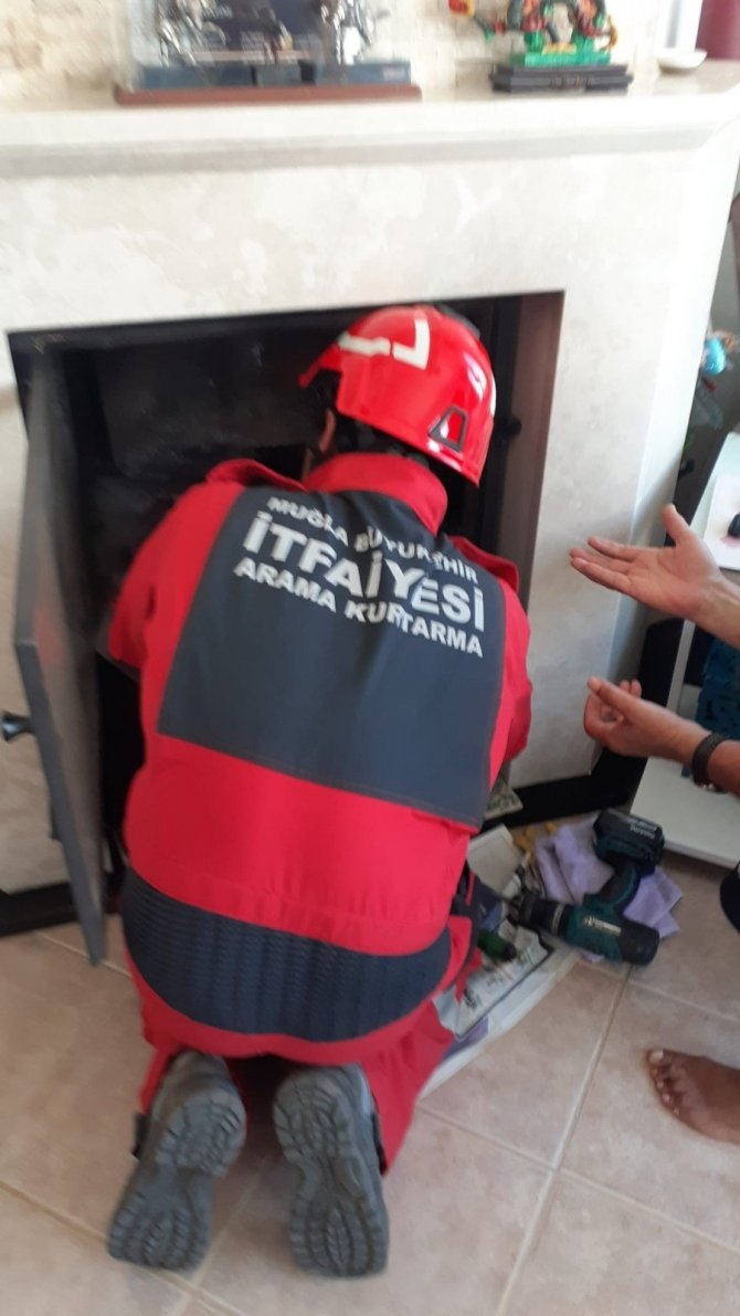 Muğla'nın Bodrum ilçesinde bir evin şömine bacasında sıkışan baykuş itfaiye ekipleri tarafında kurtarıldı.