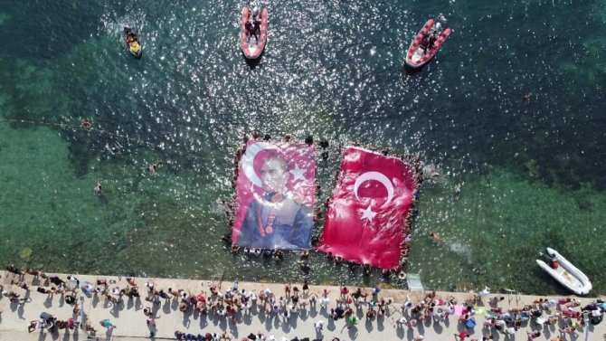 Coşku içinde gerçekleştirilen törenin kendisini çok mutlu ettiğini ifade eden Dalış Hocası Sedat Türkmen, "Dünya liderimiz, dünyada girdiği hiçbir savaşı kaybetmemiş bir komutanımız, ilk cumhurbaşkanımız, atamız, Atatürk'ümüz bize 30 Ağustos Zafer Bayramı'nı armağan etti. Biz de şu anki kuşaklar olarak yaşatmak için elimizden geleni yapıyoruz suda bayrak açarak. Halkımızın, jandarmamızın, sahil güvenliğimizin aynı zamanda kaymakamımızın büyük desteği ile burada çok güzel etkinlik yapıyoruz. Her sene kendimizi geliştirerek bunu yaşatmak istiyoruz, gelecek kuşaklara aktarmak adına bu sene de çok güzel görüntülere şahit olduk. Bu görüntüler bu güne kadar yaptığımız her şeyin yorgunluğunu üzerimizden alıyor çok mutluyum, halkın da bu enerjisini gördükçe daha çok keyif alıyorum. Bayrağı görenlerin birleştiği bir nokta bu. Aslında her sene oluyor ama geçen senelerde pandemiden dolayı biraz sıkıntılar yaşadık, çok görkemli şeyler yapamadık. Bu içimizdeki bir özlem patlaması gibi oldu bu sene. Umarım seneye böyle pandemi gibi sorunlar yaşamayız, daha büyük şekilde kutlarız. Daha fazla geliştirmek için projelerimiz var daha fazla yapacağız bunu" dedi.