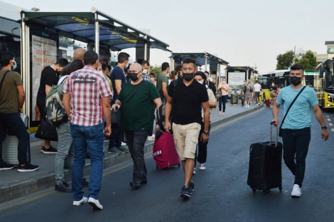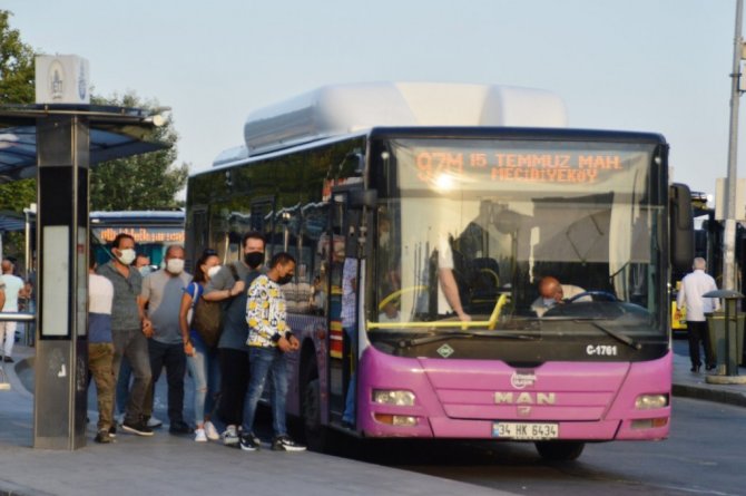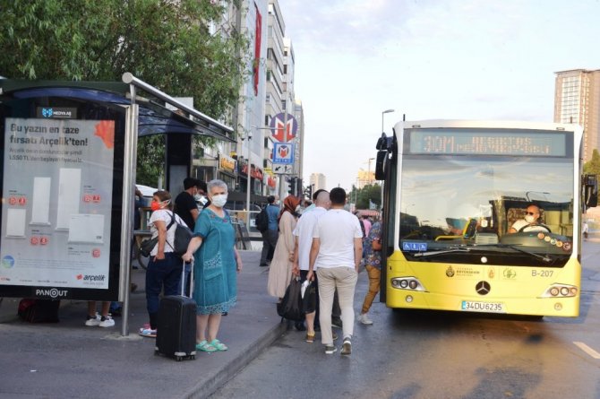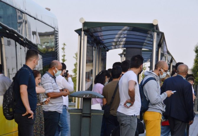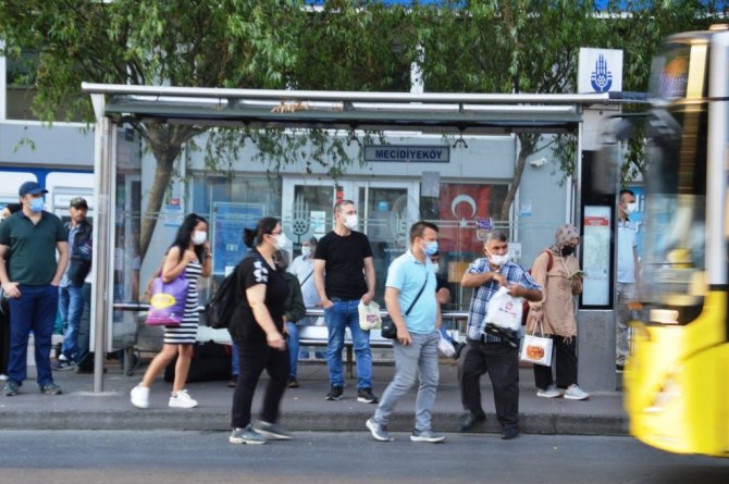 Toplu taşımayı tercih eden vatandaşların metrobüs ve otobüs duraklarında beklerken maske takıp, sosyal mesafe kuralına riayet ettikleri görüldü. Şehrin önemli güzergahlarından biri olan E-5 Karayolu Halıcıoğlu Mevkiinde de yoğunluk yaşandı.