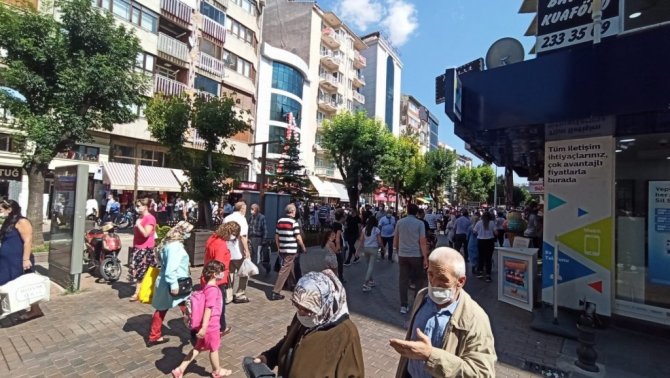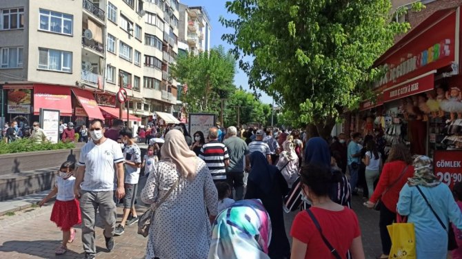 Kurban Bayramı'na sayılı günler kala vatandaşların alışverişi için çıktıkları caddelerde sosyal mesafe ve maske kuralına uymadıkları görüldü.
