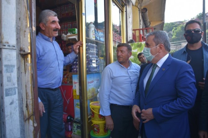 "Burada kazanmaya yakın olan Cumhur ittifakı ortağı olan partilerimizin başta AK Parti olmak üzere adaylarını destekledik. Bitlis şehrimiz de bunlardan bir tanesiydi. Gerçekten Bitlis halkını sağduyusu ve desteğiyle de AK Parti adayımız seçildi. Seçildiği günden bu güne kadar da zaten halkın içinden gelmiş olan birisi esnaflık ve ticaret yapmış birisi Bitlis'in meselelerine de vakıf bizim teşkilatlarımızla beraber Bitlis'i yerelde yönetmeye gayret ediyorlar. Tabi gündem da olan bir mesele var oda dere üstünün ıslah projesidir. Cumhurbaşkanlığının bir kararı ile burası riskli alan ilan edildi bunu biliyoruz. Bütün işlemlerde buna göre yürütülmektedir. Çevre ve Şehircilik Bakanlığı, Bitlis Belediyesi ve Bitlis Valiliği ilgili bütün kurum ve kuruluşlar bu karar sonrası bu riskli bölgeler hangi maddelere uygulamalara tabi ise bu şekilde işletiliyor. Ben esnafla konuşmamda da söyledim. Buranın mutlaka ıslaha ve düzenlemeye ihtiyacı var. Bitlis halkının yüzde 90'ınında bunu beklediğini biliyoruz. Burada şikayet konusu kamulaştırmada hakkaniyetli şekilde ödemelerin yapılmadığı yönündedir. Birde şunu gördük ki belediyemiz şunu yapmış Bitlis esnafı en yüksekten parasını aslınki bu para yine Bitlis'te harcansın. Bu konuda da bir gayret gösterildiğine şahitlik ettik. Burada şunu sezinledim gördüm. Maalesef terör örgütünün siyasi uzantısı burada bu tür projeler üzerinden vatandaşımızı esnafımızı galeyana getirmeye çalışıyor. Devlete ve hükümete karşı devletin buradaki kurumlarına karşı kışkırtmaya çalışıyor. Vatandaşımızın buna asla prim vermemesi lazım. Çünkü terör örgütü istiyor ki yatırım yapılmasın" diye konuştu.