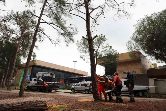 Antalya Büyükşehir Belediyesi, Konyaaltı Sahili Beach Park içinde bulunan kurumuş ve devrilme riski bulunan kızılçam ağaçlarını can ve mal güvenliğini...