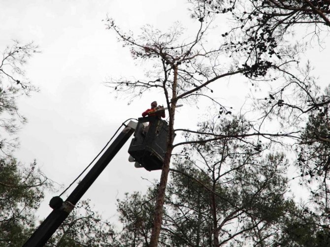 Yaşanan şiddetli fırtınalarda devrilen ve kırılan ağaçlar olması nedeniyle Orman Bölge Müdürlüğü ekipleri bölgede kurumuş, risk teşkil eden ağaçların tespitini gerçekleştirdi. Yapılan tespite istinaden Büyükşehir Belediyesi Park ve Bahçeler Daire Başkanlığı ekiplerince gerekli güvelik tedbirleri alınarak kurumuş ağaçların kesimi programlandı. Herhangi bir kazaya sebebiyet vermemesi için tehlike oluşturan kurumuş ağaçların kesimi yapılırken, bazı ağaçların da dalları budandı.
