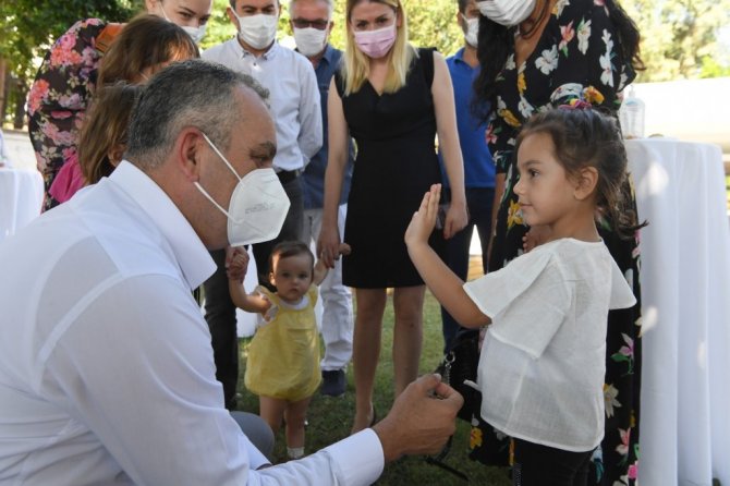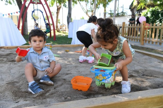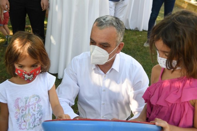 Bebeklere özel parkın açılış kurdelesini çocuklar kesti,