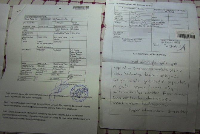 Artvin'de bel ağrısı için başvurduğu hastanede yapılan ağrı kesici iğne sonrası ayağı kalkamayan Tahir Turan, doktor hakkında savcılığa şikayette...