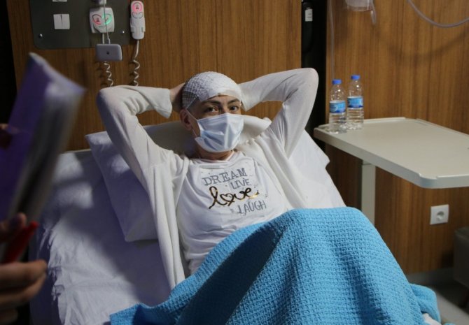 Hastanın Belçika'dan geldiğini belirten ve sağlık sorunları hakkında bilgi veren Op. Dr. Muhammet Duranel ise "Hastamız, uzun zamandan beri baş ağrıları şikayeti, ara ara bayılma nöbetleri tarif ediyor. Hastamıza Belçika'da da ameliyat önerilmiş fakat oldukça yüksek düzeyde riskli olduğu söylenmiş. Kendisine estetik açıdan da sıkıntılı bir ameliyat olabileceği söylenmiş. Hastamız Türkiye'ye geldiği zaman başka bir yerde özel hastanede MR çektiriyor, daha sonrasında ise bana danışmak için geldiler. MR'ı gördükten sonra kendisine ameliyat kararı verdim. Ameliyatının çok zor olmadığını, bir beyin tümörünün olmasına rağmen tümörün lokalizasyon itibariyle hastaya ciddi sıkıntı oluşturmayacağını ve tümörün iyi huylu olduğunu söyledim. Hastamız bize itimat etti ve ameliyatını yaptık. Ameliyattan sonra bugün 4'üncü günümüz, kontrol amaçlı bir gün yoğun bakımda beklettikten sonra servise aldık. Şuanda her şey yolunda gidiyor. Büyük ihtimalle hastamızı yarın ya da öbür gün taburcu edeceğiz" ifadelerini kullandı.