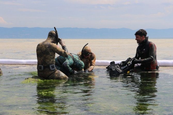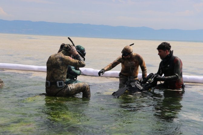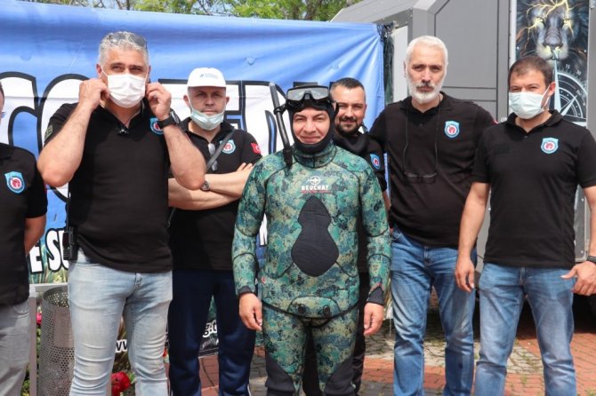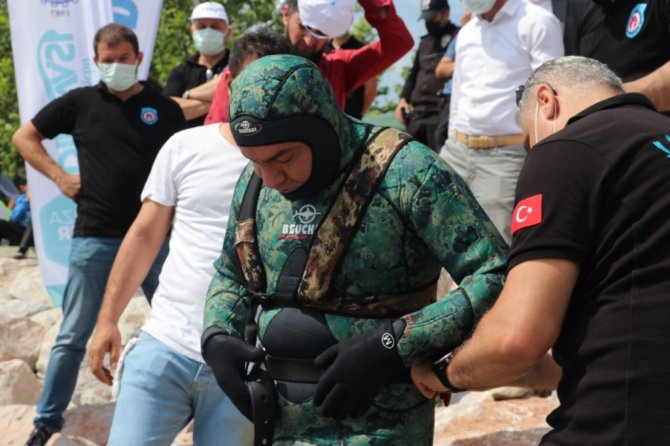 Belediye Başkanı, dalgıç kıyafeti giyip salya için körfeze daldı