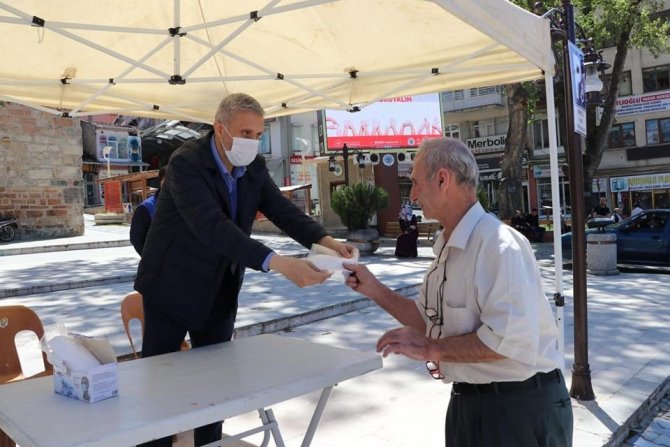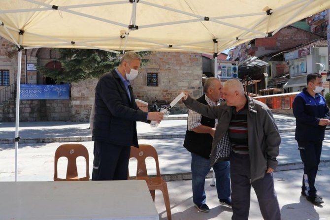 Simav Belediye Başkanı Adil Biçer’in de bulunduğu maske dağıtımı Cumhuriyet Meydanı’ndaki Nasuhağa camisi önünde kurulan stantta gerçekleştirildi.