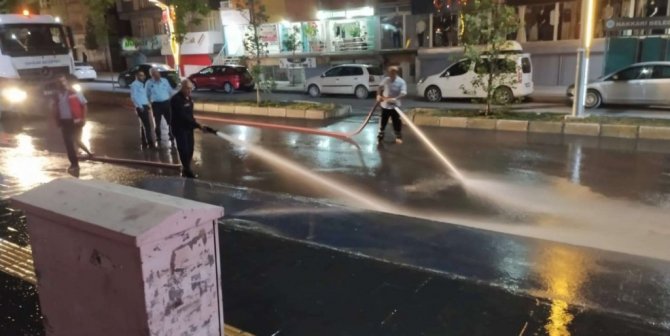 Hakkari Belediye Başkanlığı ekipleri, gün içerisinde gerçekleştirdikleri temizlik çalışmalarını gece geç saatlere kadar sürdürüyor.