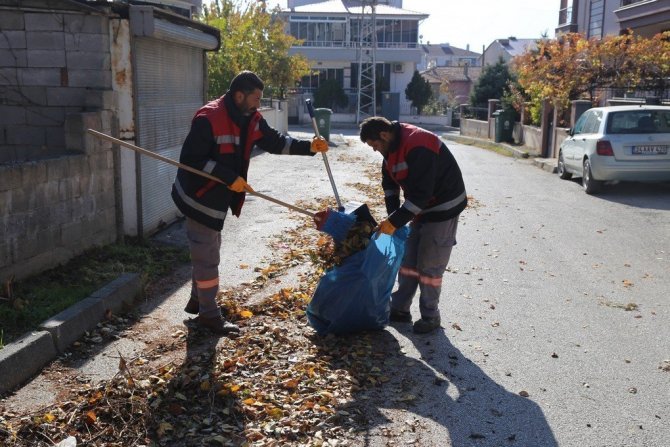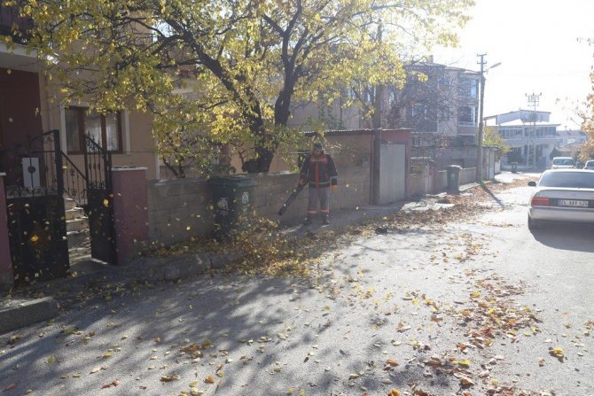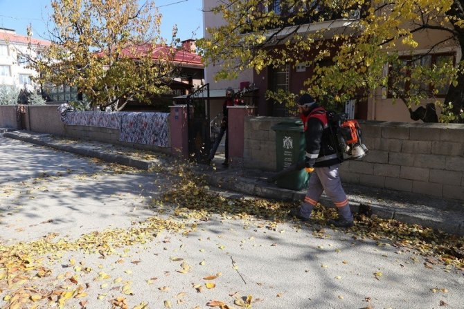 Erzincan'da kış ayları yaklaştıkça ağaç dallarından dökülen yaprak gazelleri belediye ekiplerince temizleniyor.