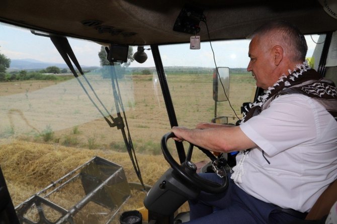 Belediye Başkanı Zeki Bilgin, Belediye Başkan Yardımcısı Hüseyin Çelik ve Çiftçi Malları Koruma Başkanı Adem Güler ile birlikte buğday hasadının yapıldığı araziyi ziyaret ederek, bir süre biçerdöveri kullandı. Hasat çalışmasına CHP İlçe Başkanı Hasan Levent de katıldı.