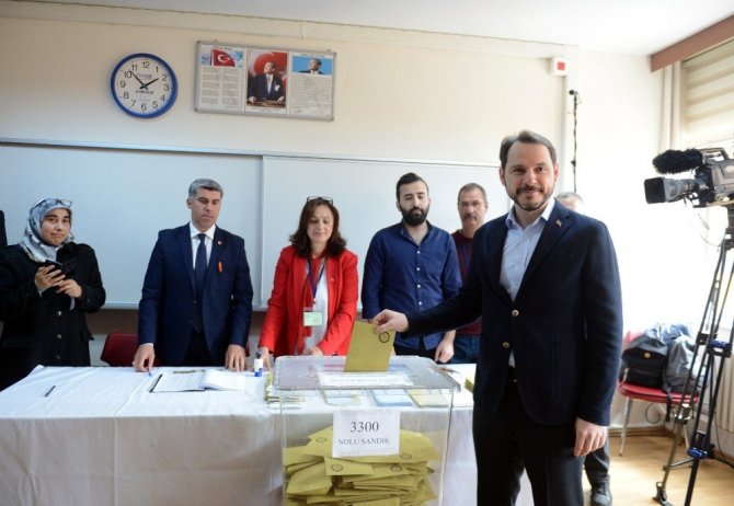Hazine ve Maliye Bakanı Berat Albayrak ile eşi Esra Albayrak, Üsküdar’daki Saffet Çebi Ortaokulu’nda saat 14.00 sıralarında oylarını kullandılar.