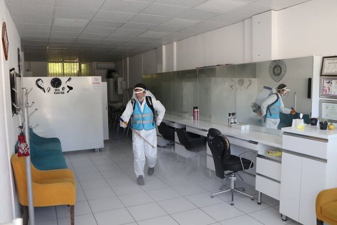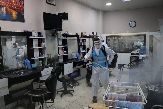 Kütahya’nın Simav ilçesinde, Korona virüs (Covid 19 ) tedbirleri kapsamında yaklaşık 50 gündür kapalı olan berber ve kuaförlere Belediye Başkanlığı tarafından dezenfekte desteği verildi.