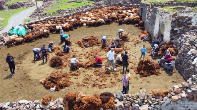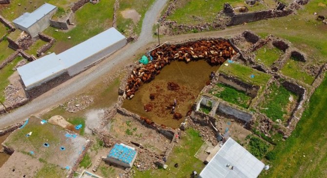 Koyun kırkma işleminin havadan görüntülenmesi ise güzel görüntüler oluşturdu.