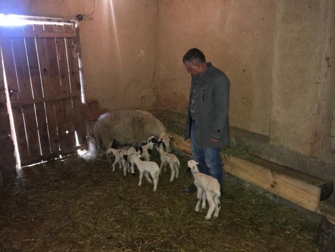 Eskişehir'de küçük ve büyükbaş hayvan üreticiliği yapan Adil Ülker, koyunlarından birinin tek başına dünyaya getirdiği 5 kuzuyu özenle büyütürken, diğer hamile koyunlarının da fazla yavru doğurmasını ümit ediyor.
