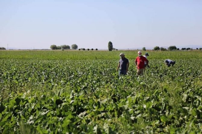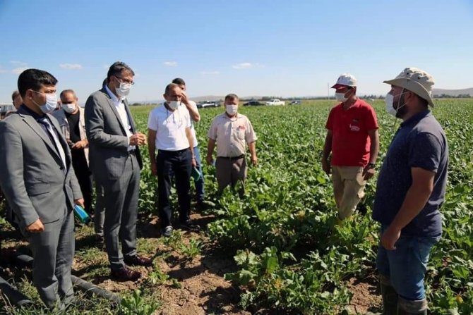 Kütahya’nın Altıntaş ilçesinde Beşkarış Barajı’ndan faydalanan Çakırsaz Köyü’ndeki pancar tarlalarını inceleyen Vali Çelik çiftçilerle görüştü.
