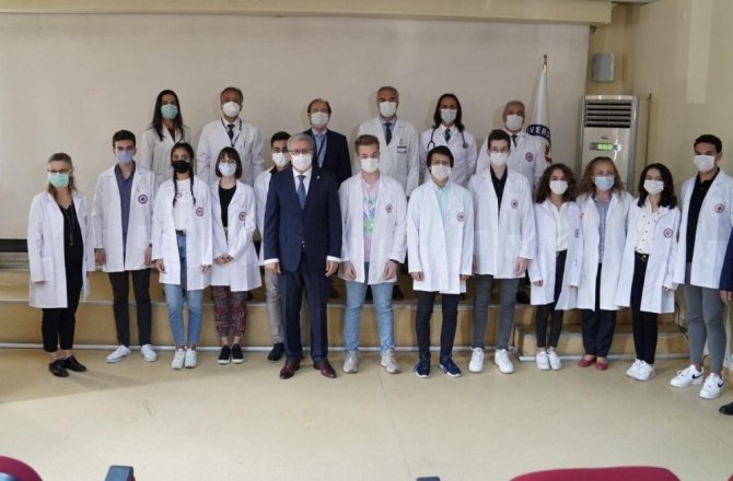 Beyaz Önlük Giyinme Töreninde EÜTF’yi dereceyle kazanan öğrencilere önlüklerini, Rektör Budak, Dekan Gürgün ve Başhekim Ulukaya giydirdi. Uyum Haftası kapsamında, öğrencilere yönelik akademisyenler tarafından online çeşitli sunumlar yapılacak, üniversite ve fakülteye ilişkin bilgiler verilecek.