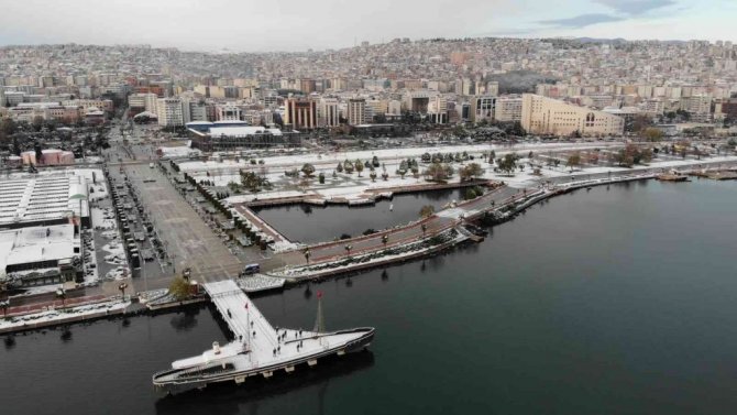 Samsun'da dün başlayan, gece de aralıklarda devam eden kar yağışı sonucu şehir beyaza büründü. Beyaz gelinliğini giyen Samsun havadan görüntülendi.