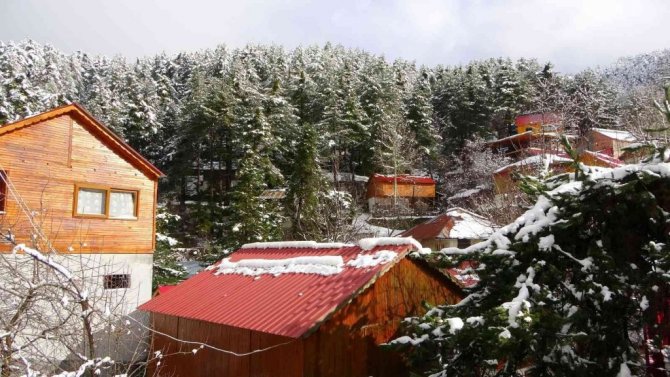 Zorkun Yaylası'nın beyaz gelinliğini giydiğini söyleyen vatandaşlar, kar yağışıyla birlikte ağaçların süslendiğini çatıların bembeyaz olduğunu ifade ettiler.