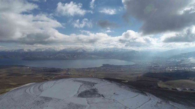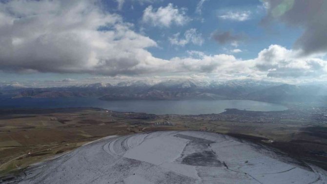 Tatvan ilçesinde etkili olan kar yağışı yüksek kesimleri beyaza bürüdü. Kentin en yüksek noktalarından olan Nemrut Dağı ve çevresi, drone ile görüntülendi. Ağaçların karlı dağlarla bütünleşmesi ve koyunların beyaz örtünün altında dolaşması da ortaya eşsiz bir manzara sundu. Kentin yüksek kesimleri beyaza bürünmesi fotoğraf tutkunlarına da görsel bir şölen sundu.
