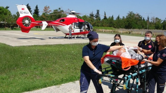 Samsun'da beyin kanaması geçiren yaşlı adam Sağlık Bakanlığına ait ambulans helikopterle hastaneye yetiştirildi.