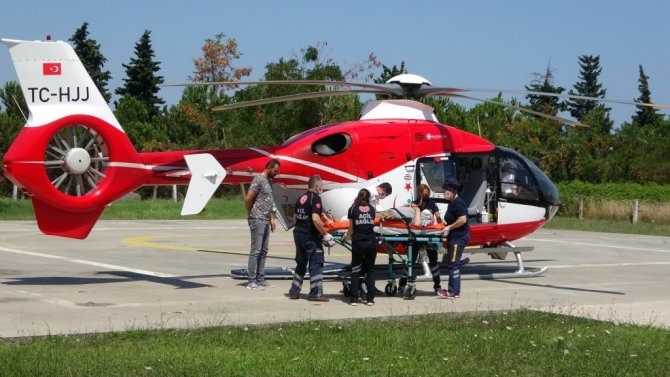 Edinilen bilgiye göre, Samsun'un Asarcık ilçesinde ikamet eden 71 yaşındaki Kadir A., beyin kanaması geçirip Asarcık Devlet Hastanesine kaldırıldı. Samsun Eğitim ve Araştırma Hastanesine sevkine karar verilen yaşlı adam için Samsun'dan ilçeye Sağlık Bakanlığına ait ambulans helikopter sevk edildi. Kadir A. ambulans helikopterle Samsun Eğitim ve Araştırma Hastanesine götürülerek burada tedavi altına alındı.