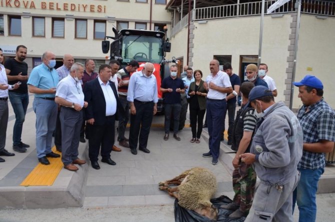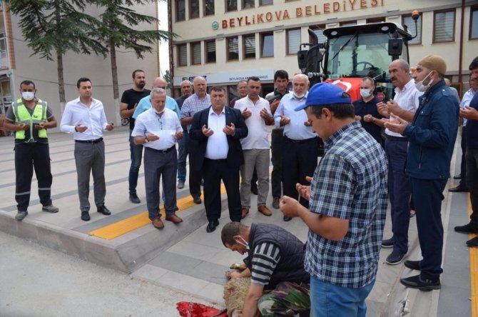 Beylikova Belediye Başkanı Özkan Alp ve Belediye Meclis üyelerinin katılımları ile yeni iş makinasını kutlamak adına kurban kesim töreni gerçekleştirildi. Hibe edilen sıfır traktör, dualarla Beylikova Belediyesi'nin hizmetine sunuldu.